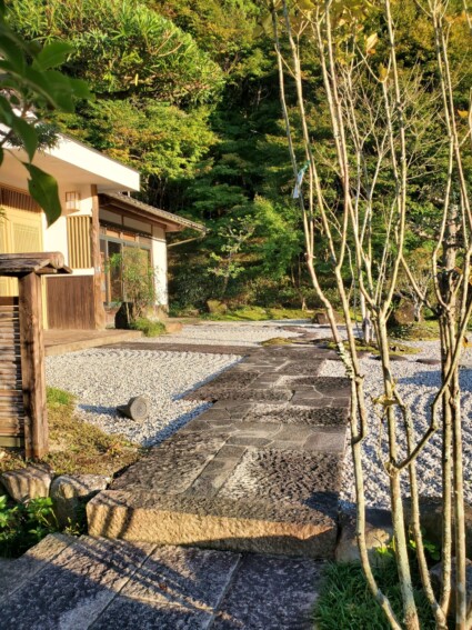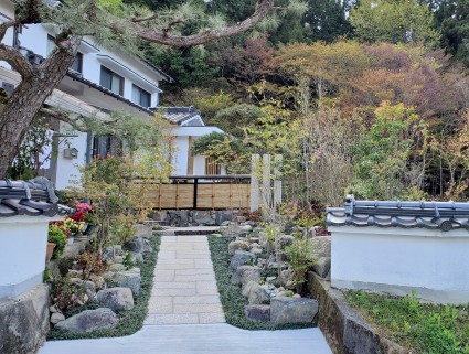 板石と鉄平石を組み合わせた石畳は雰囲気を感じます。