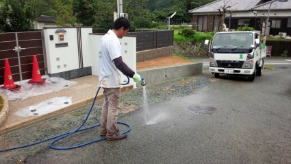 最後は道路まで綺麗に清掃です。