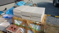 カタログに掲載されている色とは微妙に違いますし、一枚一枚同じ色はありませんがその色幅が仕上がったときに初めて全体のアプローチの色になるわけです。
