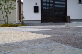 今回は天然素材である御影石を敷き詰めてアプローチを作成しています。