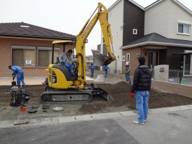 舗装が終わると白線のラインや車止め、そして仕上の植栽工事に入ります。