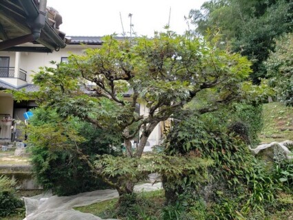 佐用町庭木の剪定 枝が広がったモミジをバランス良く剪定。枝の間に余裕が出来て庭が広く感じられました。