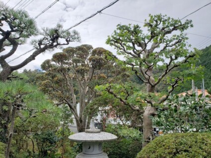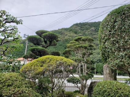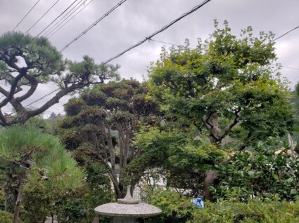 サザンカやマキ、サツキといった刈り込みをする木がたくさんあります。