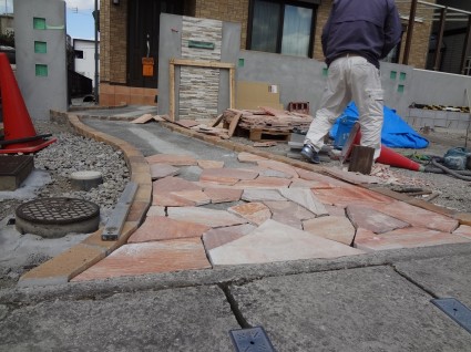 手間仕事ですが、完成したら立派なアプローチになります。