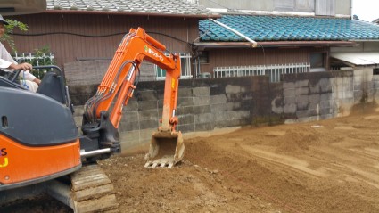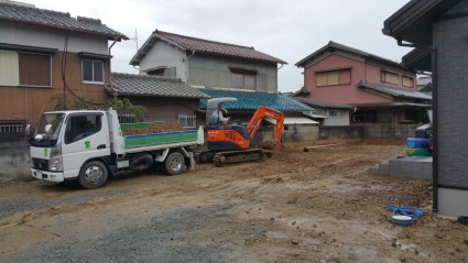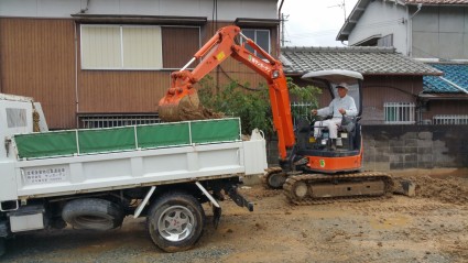 現状の土を掘削して残土を出していきます。