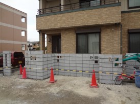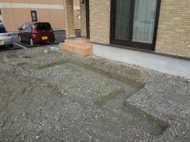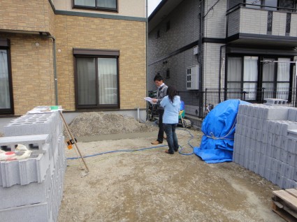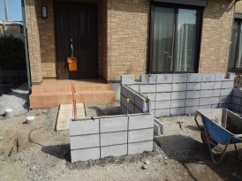 掘削をして基礎コンクリートそして下地のセメントブロックを積み上げていきます。