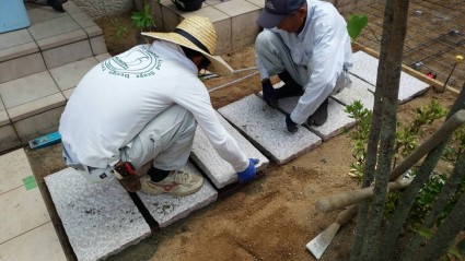 御影石を敷いて通路を作ります。