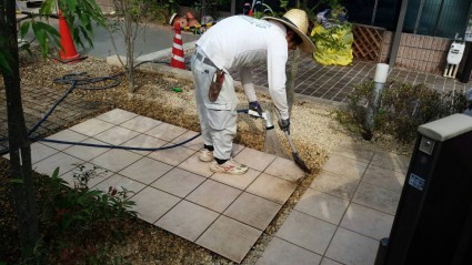 化粧砂利を入れて最後は水洗い