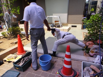 土間コンクリートの仕上げコテ押さえをしている時にとどかなかった