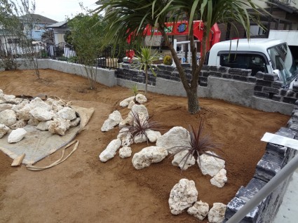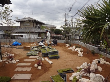 この後は苔を植えて、砂利を敷いて仕上げていきます。