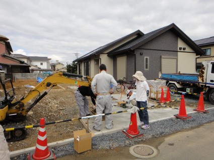 今日は門柱部分の下地ブロックや土間コンクリートのスキトリ