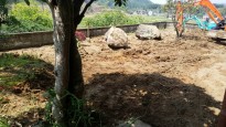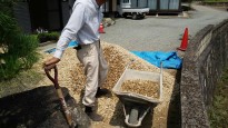 築山を作成するため一旦は庭石を移動して土を削り水平にした後高さを出して盛り土築山を作成していきます。