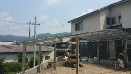 カーポートにサイクルポートとテラス工事