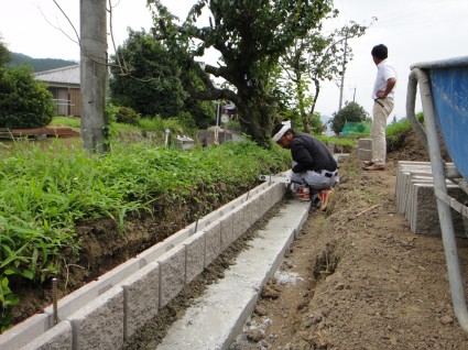 基礎工事をして境界のブロックを積んで行きます。