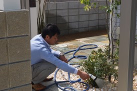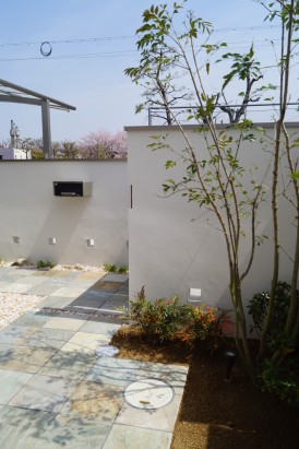 お子さんがお庭に安全に過ごせるクローズ外構。