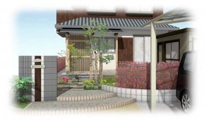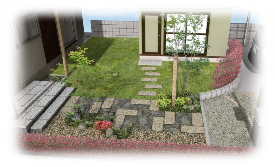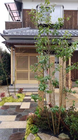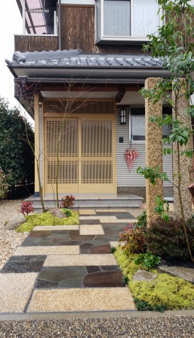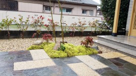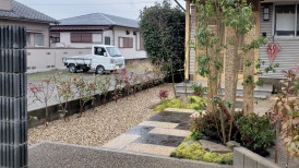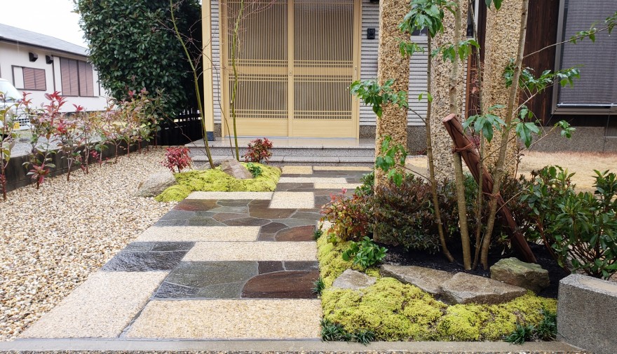 外構アプローチ|和風住宅に似合う和モダンなアプローチ植栽工事