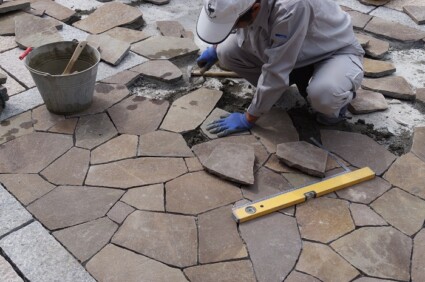 風格のある重厚な石畳と鉄平石の和の庭 姫路市Y様邸