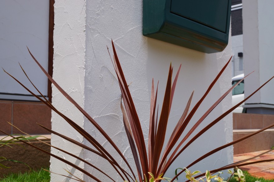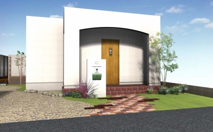 周りの芝生のグリーンの中に浮かび上がるような印象のアプローチが完成しました。