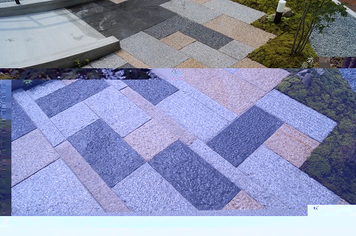 スロープの繋ぎ込みは鉄平石でランダムな石畳ともよくマッチして趣が感じられます。
