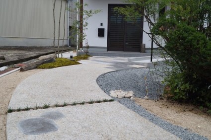 高級感ある和風のきれいな石のアプローチ 神崎郡市川町K様邸
