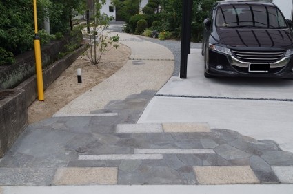 HOME外構・エクステリア・お庭の施工事例アプローチ > 高級感ある和風のきれいな石のアプローチ 神崎郡市川町K様邸