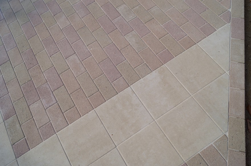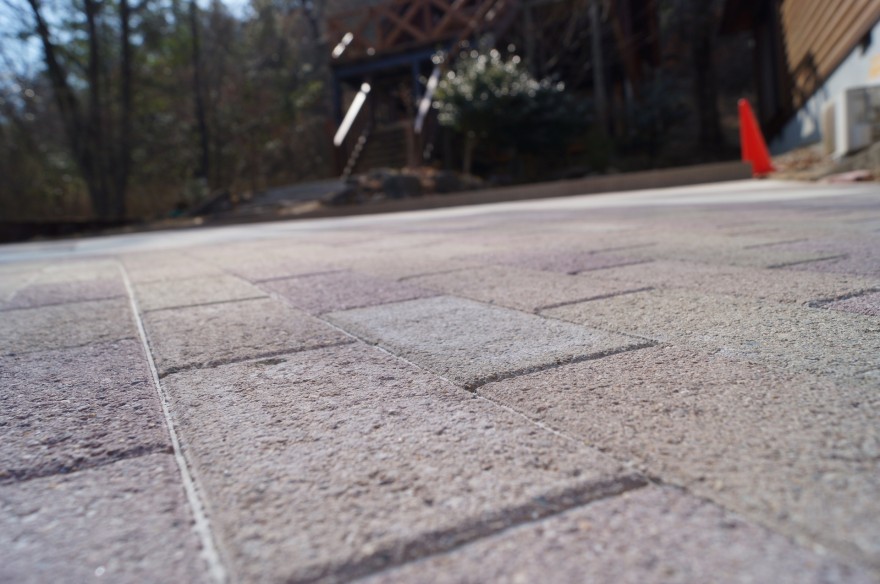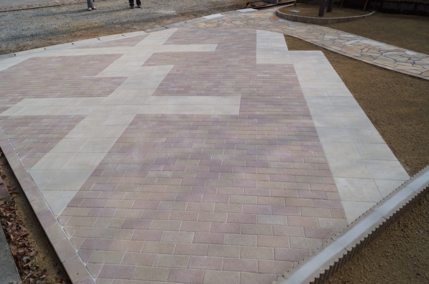 駐車場部分にはインターロッキングとコンクリート平板でデザインしています。