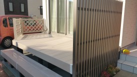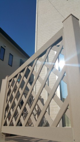 白色の樹脂デッキ ラチスフェンス付 姫路市