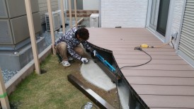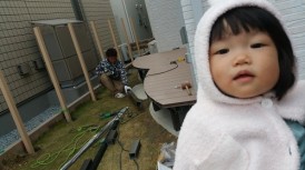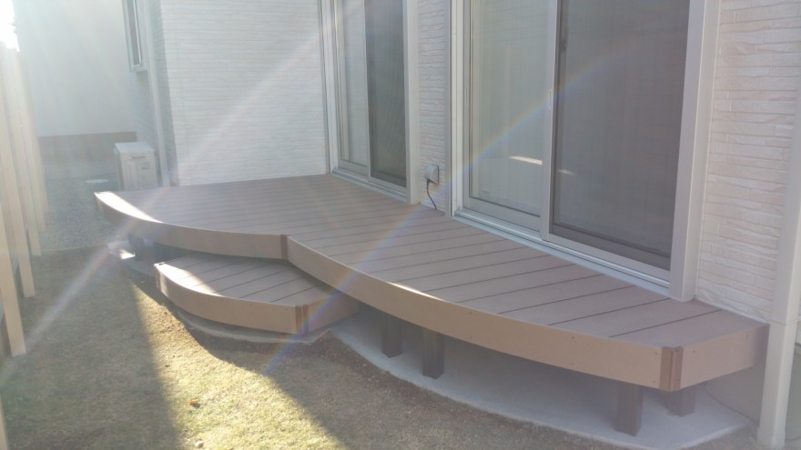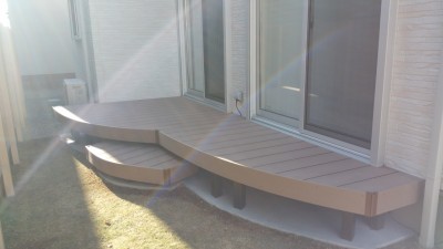 可愛いお子さんのお庭で遊べるウッドデッキ工事