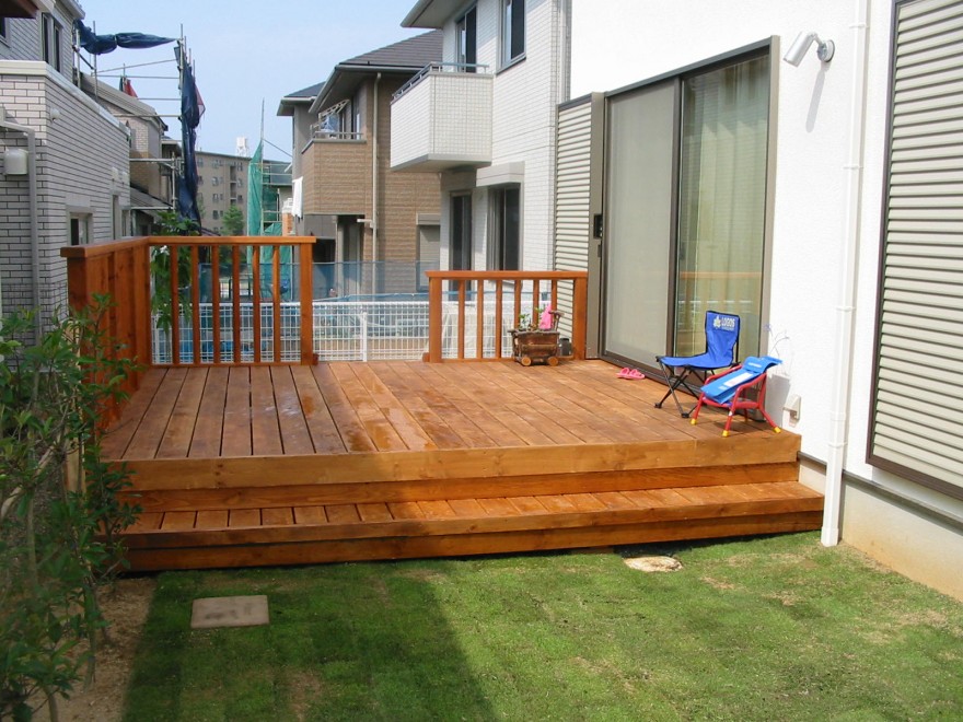 このデッキの上から家族のコミニュケーションがはじまれば私たちにとって何よりの喜びです。 フェンスも自社オリジナルの作品です。