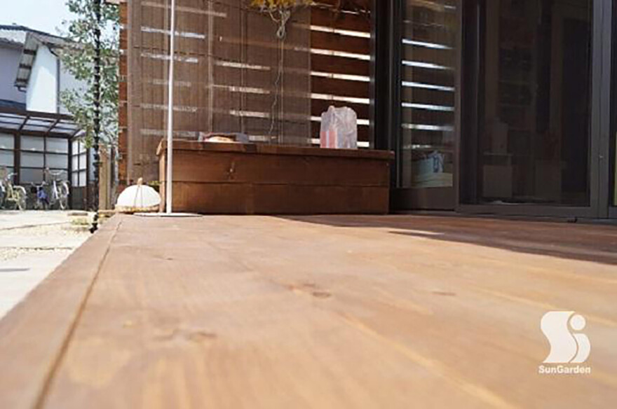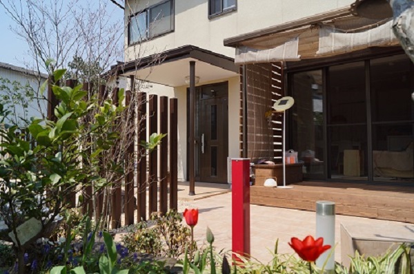 デッキでお茶を飲んだりタイルテラスでBBQなど家族のコミニュケーションの場になりました。