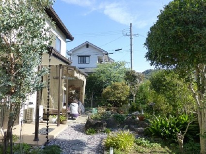 玄関横にあるので季節の花や松ぼっくりなど季節感あるものでお客様をお出迎え。