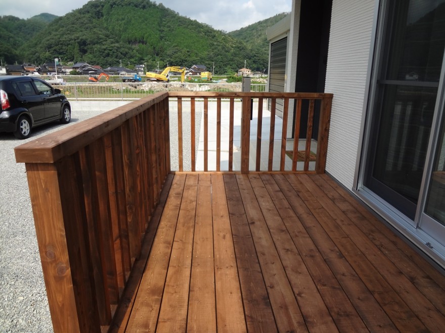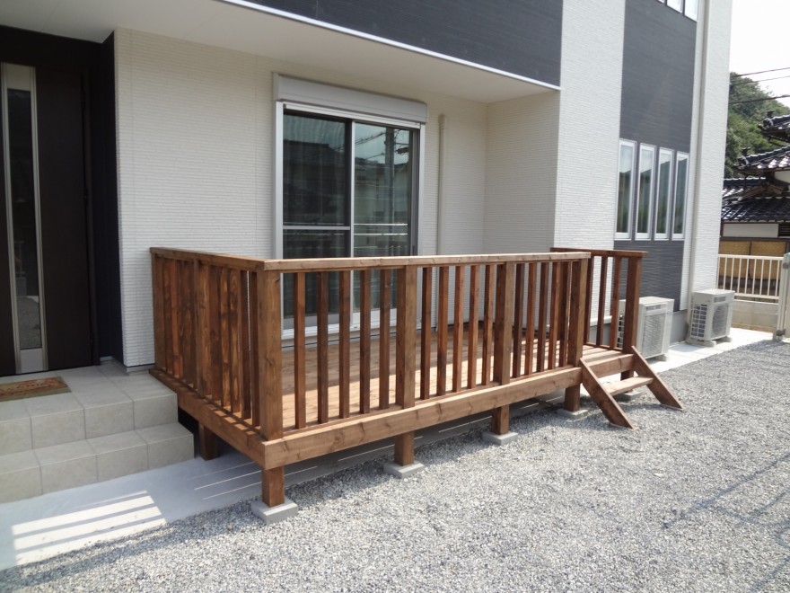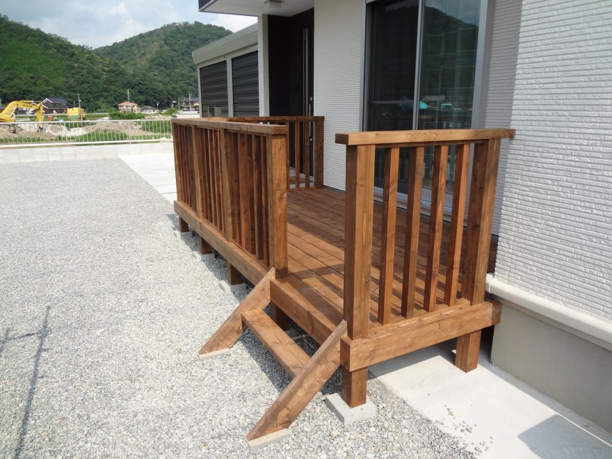リビングの前にコンパクトサイズのウッドデッキを設けました。