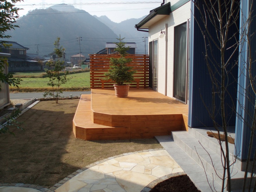 > ステップがベンチにもなるウッドデッキ 宍粟市 C様邸