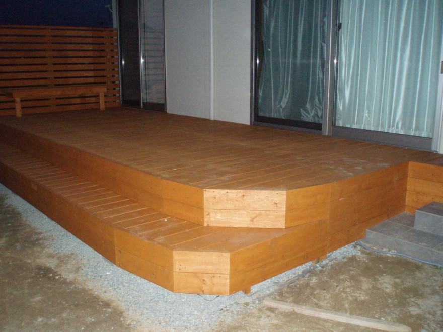 ステップがベンチにもなるウッドデッキ 宍粟市 C様邸