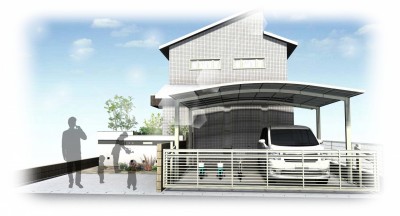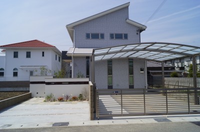 ご夫婦の駐車スペースはワイドカーポートを設置。