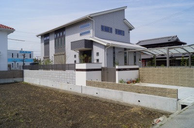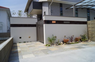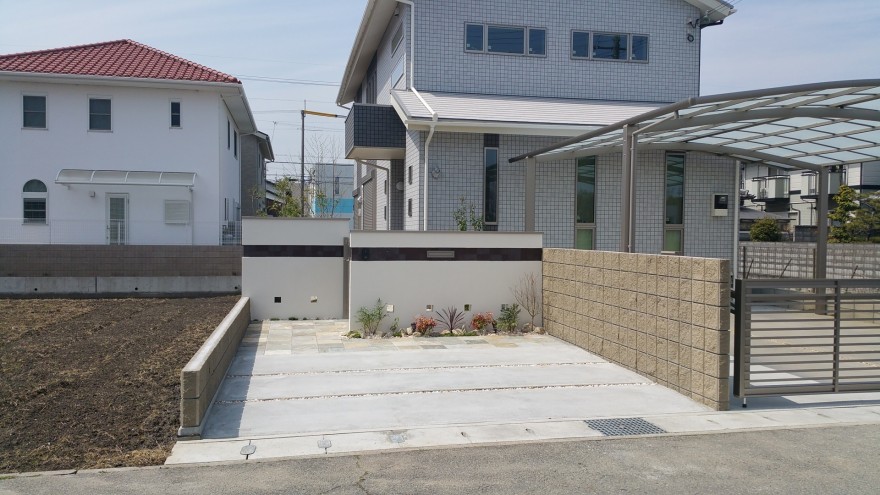 門柱にワイド感が出て,重厚感ある門廻りとなりました。