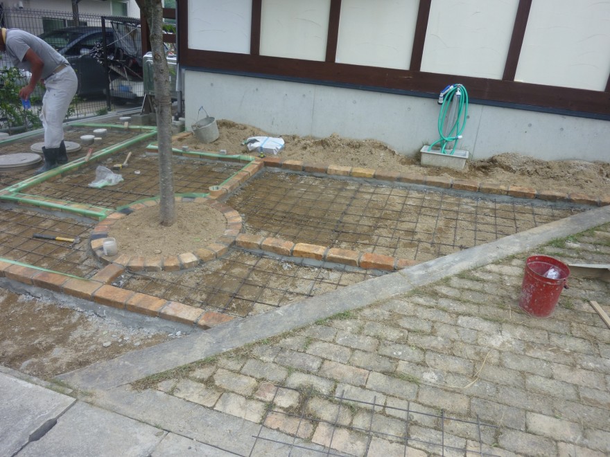 レンガでラインを入れてコンクリートで仕上げていきます。