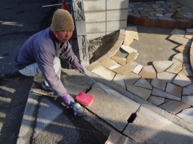 塗り壁の足元の汚れ防止の為に,アプローチ同様の
