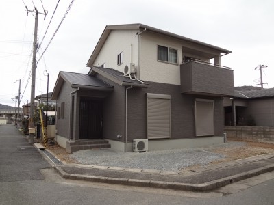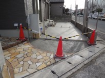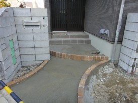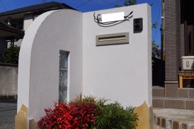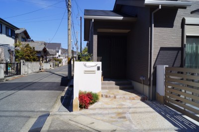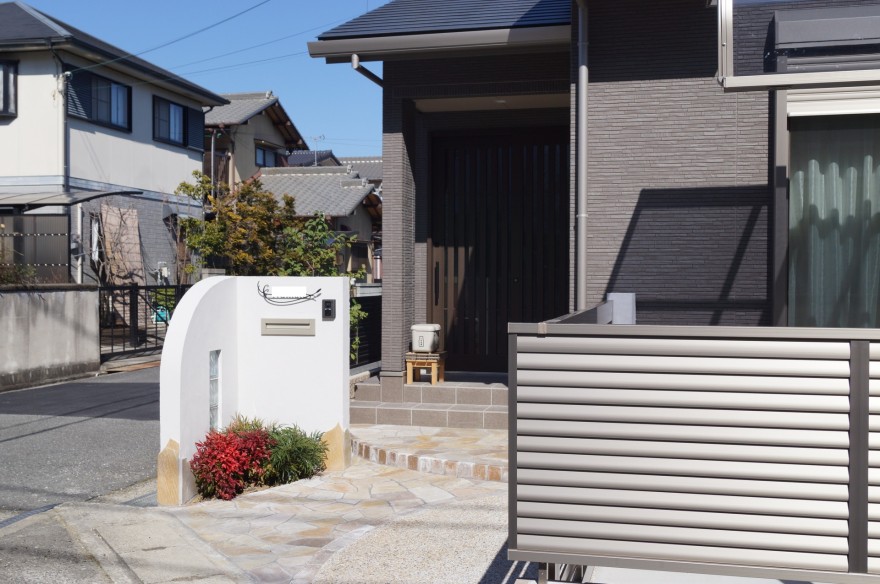 HOME外構・エクステリア・お庭の施工事例新築外構 > 姫路市外構|限られたスペースにアイアン表札とアールデザインの可愛い門柱の新築外構