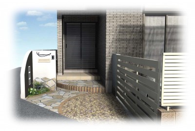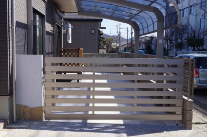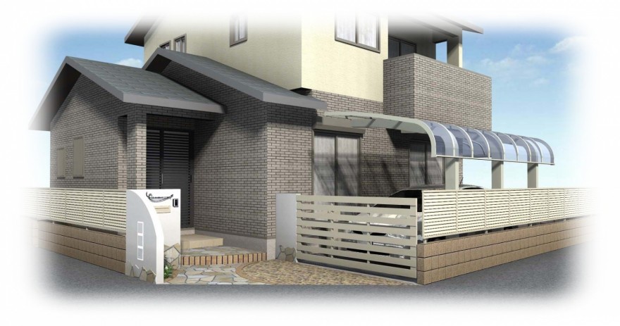 姫路市外構|限られた敷地を有効に門柱とオーバードアを取り付けた外構事例