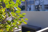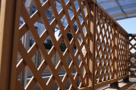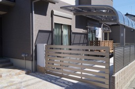 ・化粧ブロックの上にルーバータイプの完全目隠しフェンス