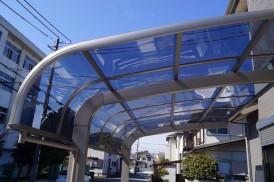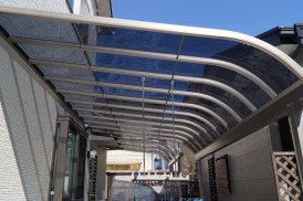 またポーチまで高さがあるので,門柱のアールと合わせて