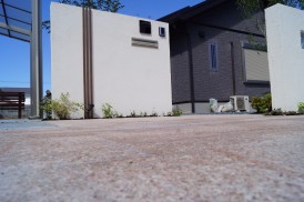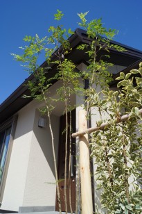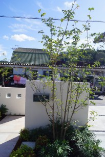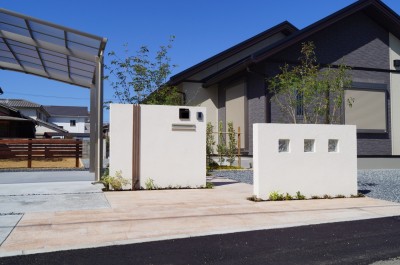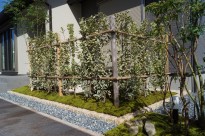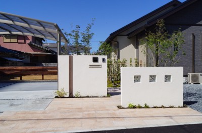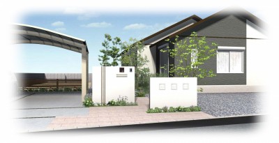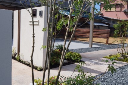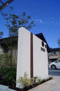 また,二枚の高さ異なる門柱と,植栽で奥行感も演出しました。