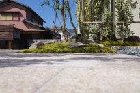 ・和室前は生垣をバックに築山と伊勢ジャリで和モダン空間