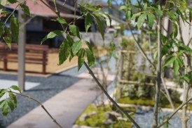 ・交差するアプローチと植栽で奥行感のあるアプローチ