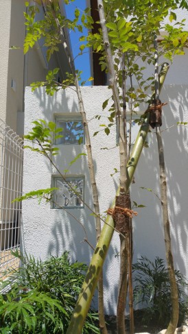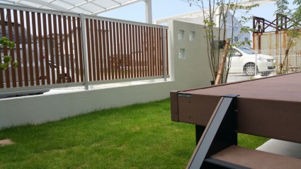 ・ベランダの木目調フェンスに合わせた目隠しフェンス