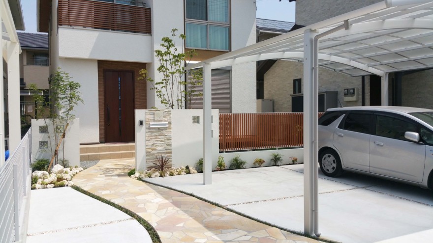 姫路市外構|門廻りの琉球石や植栽が優しくお出迎えしてくれるようなアプローチ