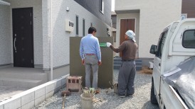 ・サンガーデン姫路事務所にあった石(スティックストーン)をつかった門柱