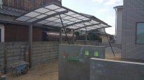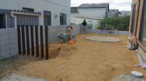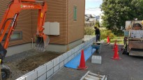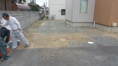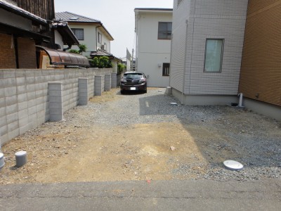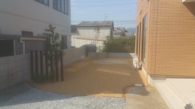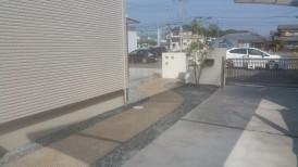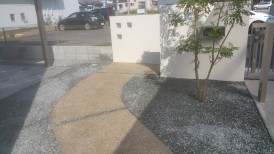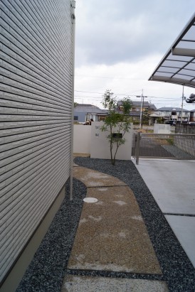 HOME外構・エクステリア・お庭の施工事例新築外構 > 姫路市外構|天然石の小石の洗出しで緩やかなカーブの素敵なアプローチがある新築外構