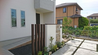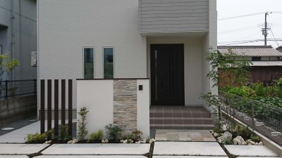 シンプルでスタイリッシュな住宅を,お客様のご要望のモダンな外構に…